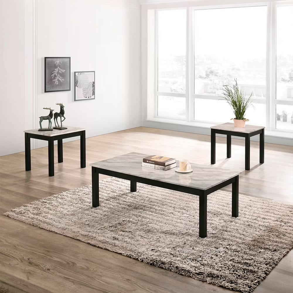 3pc faux white marble occasional table set
