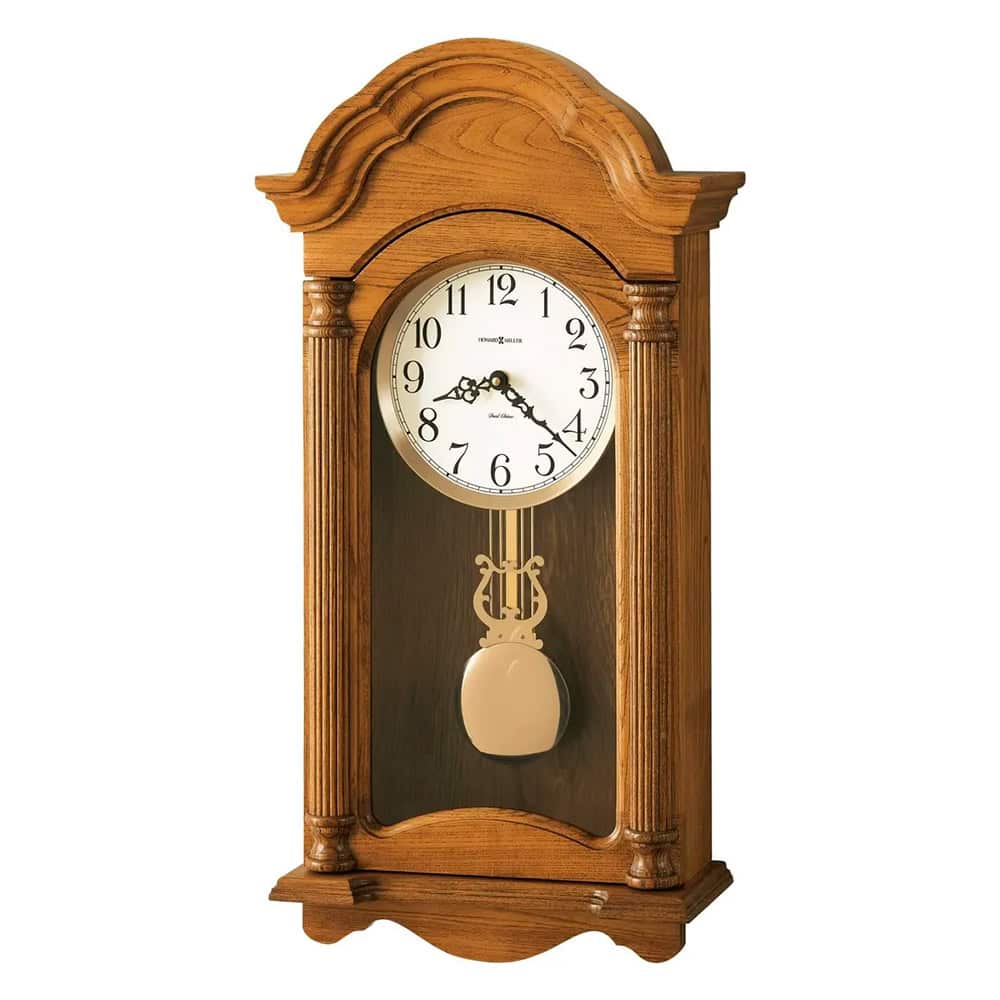 Timeless Treasure: This antique wall clock is a true treasure in every sense. Featuring a distinctive design, it’s finished in Golden Oak and features an arched bonnet with scalloped edging. On the sides are reeded columns with gently turned caps. This traditional wall clock with pendulum exudes an old-world quality, yet offers robust functionality. It’s the perfect addition to any home or office.