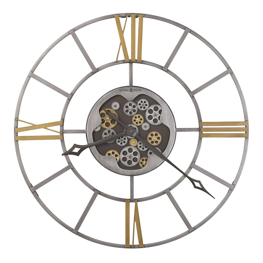 With moving gears finished in aged silver and antique gold, this clock adds a captivating focal point to any room. The applied antique gold-finished Roman numerals at the 12, 3, 6, and 9 positions, along with aged silver-finished bar markers, enhance its classic charm.