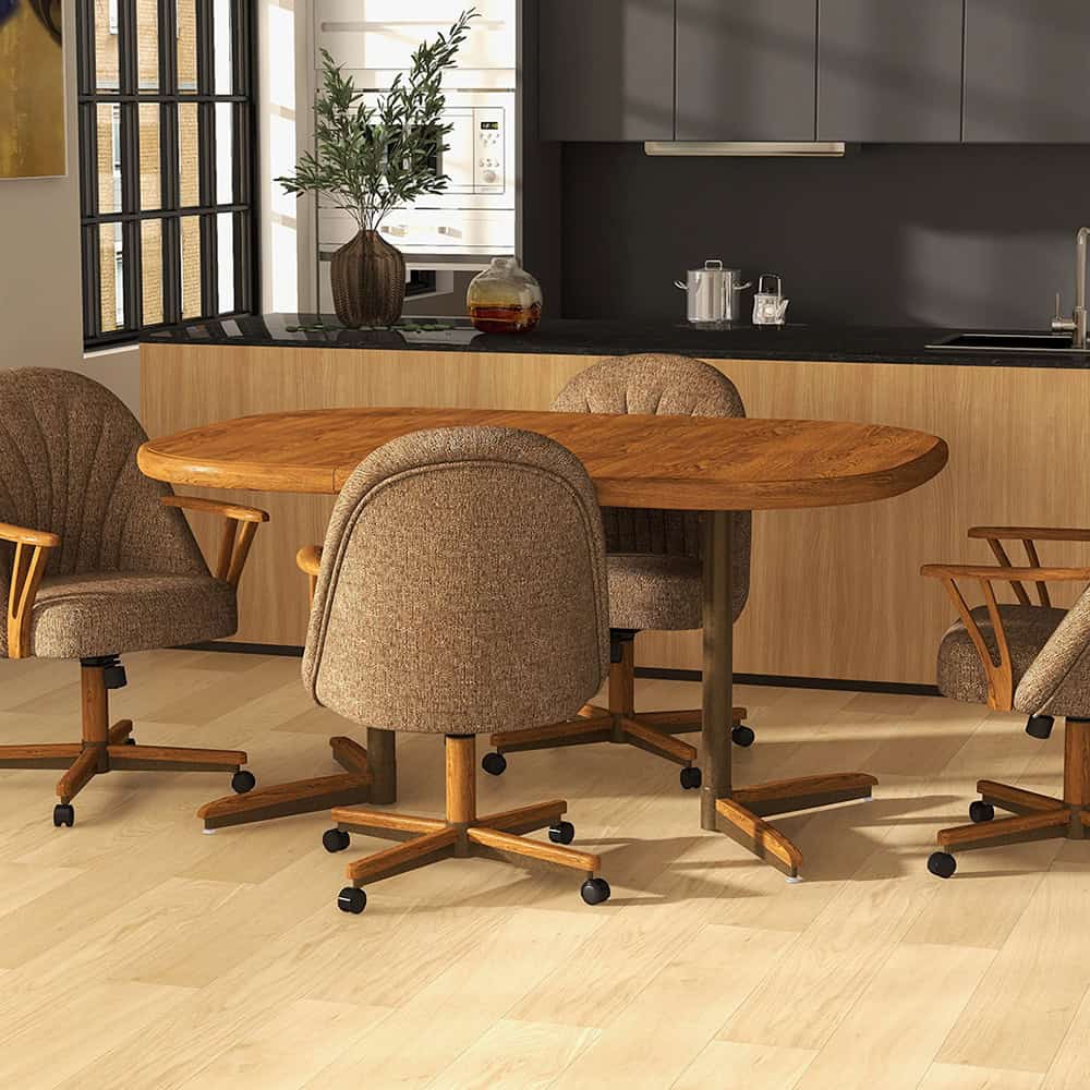 - 42″ x 42″ table extends to 60″ with addition of 18″ leaf