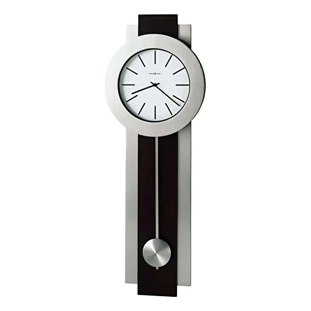 WALL CLOCK: The Bergen Wall Clock features a Merlot Cherry finish and contrasting brushed nickel-finished pendulum, bezel, and sidebars to complement your home decor. The clock’s quartz movement makes a soft ticking noise without the use of chimes for a quieter environment.