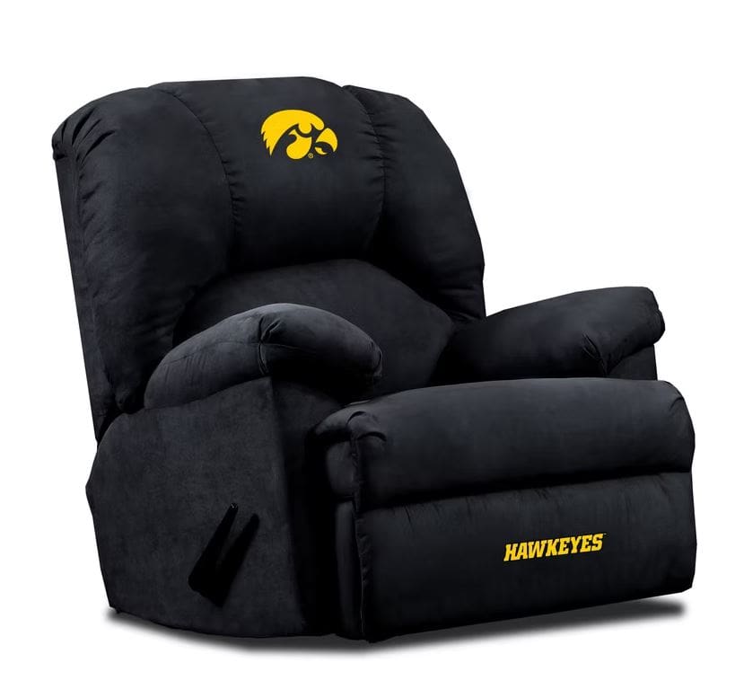 Get ready to watch the Big Game in ultimate comfort with this recliner. The vibrant microfiber fabric features an embroidered logo on the headrest and ottoman, bringing the home-field advantage to any room of the house. Designed for fans up to 6 feet tall, this rocker recliner is built with sturdy kiln-dried hardwood and cross-banded plywood frame, making it both comfortable and durable.