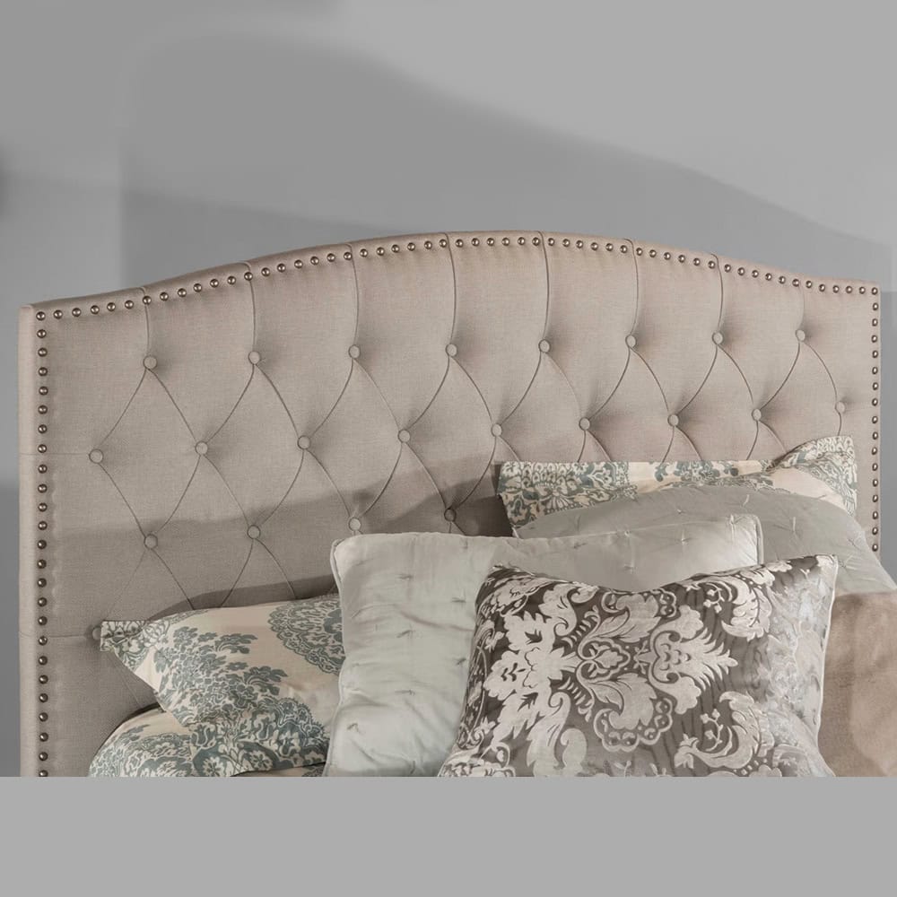 The Lila headboard marries simplicity with subtle embellishments to bring forth a look that’s both sophisticated and unique. This tufted upholstered headboard features a modest camelback design with button accents and nail head trim that establishes style continuity.