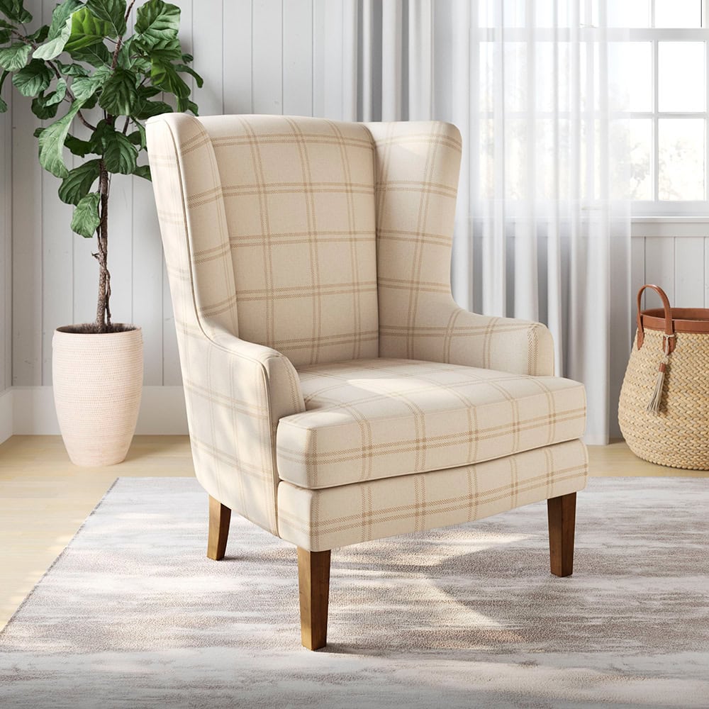 This chair’s tailored, timeless look with a simple cross plaid design, adds a classic elegance to any room.