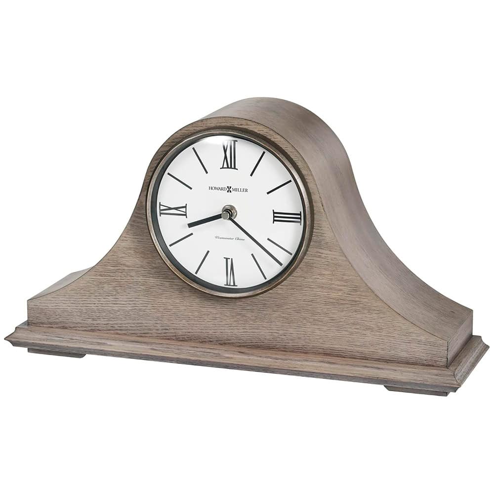 Ash veneered tambour style mantle clock in Seaside Grey finish. Battery operated.