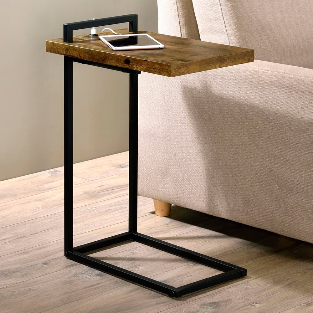 Earthy and modern, this accent table features a floating tabletop design and a minimal C-shaped silhouette. With a flush base that slips beneath seating, slide this table up to reach for refreshments or keep a handheld device close at hand. The sturdy steel base offers ample support for heavier objects, while the powder coated finish offers a contrasting element. Perfect for an industrial style living room, this functional accent table keeps your devices charged with a USB port in the back. A narrow tabletop makes this table perfect for compact spaces.