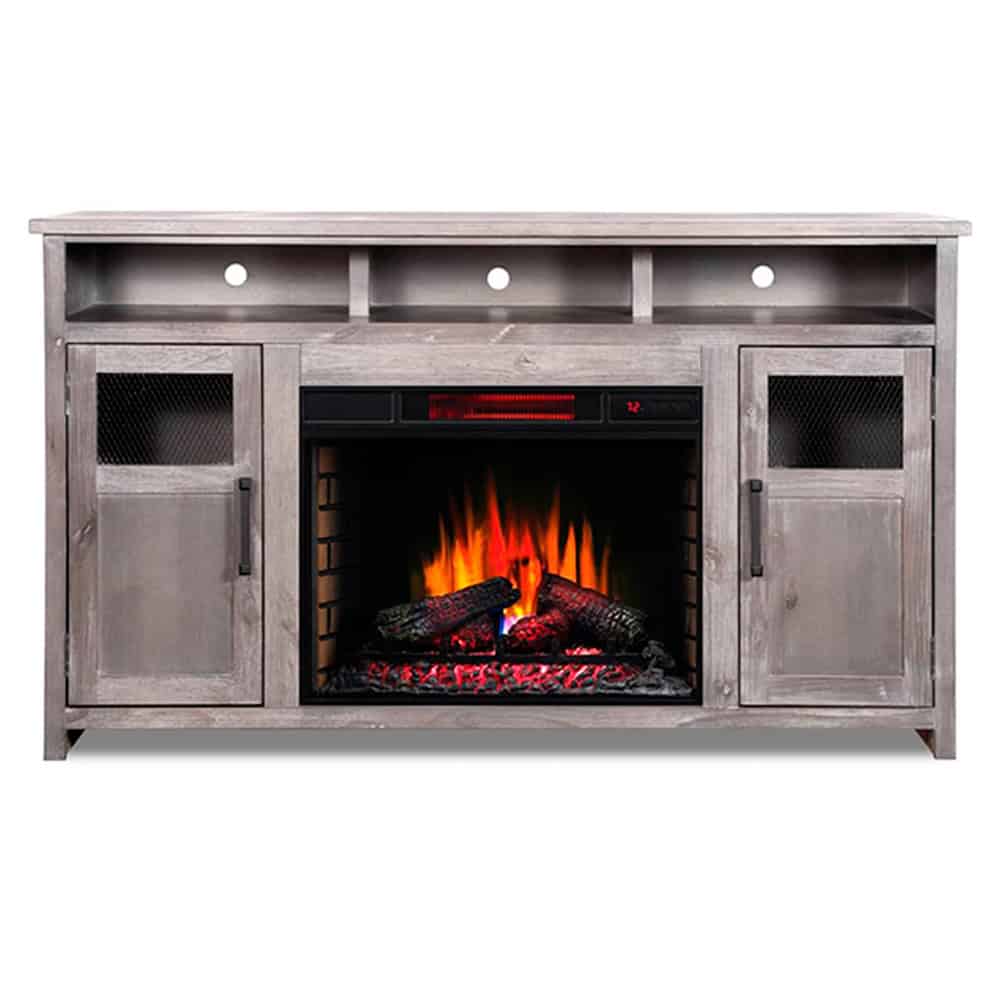 Traditionally charming & understated. Dressed in subtle distressing & finished in Rustic wire brushed Driftwood. Accommodates up to 75″ TV. Made in USA.