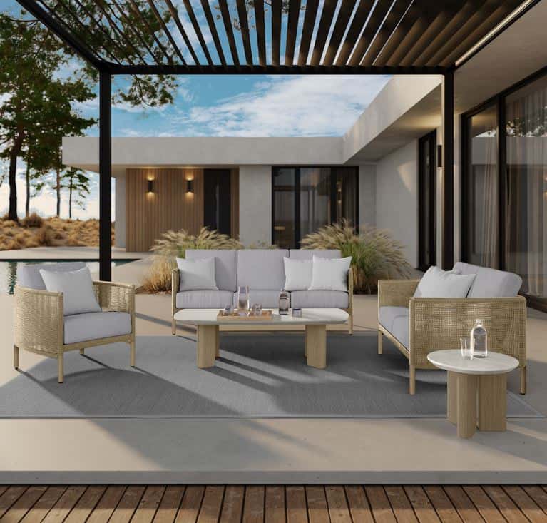 Orleans features a curved backrest and open weave design, creating a cozy, enveloping feel. Combining style with comfort, Orleans adds warmth and elegance to any outdoor space. The versatile Barley & Flax combination allows for endless complementary fabric choices, perfect for creating a serene and inviting ambiance. Our Coal & Smoke combination features a deep, rich shade with gray undertones that adds depth, strength, and elegance to any space.
