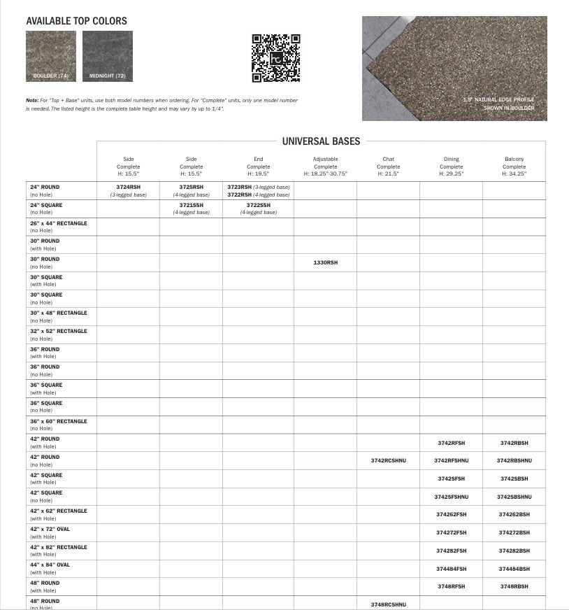 Homecrest, Outdoor Furniture, Patio SetsOur elegant Shadow Rock tables provide an attractive look that will complement any outdoor furniture set. With its beautiful, distinct texture and natural colors, the Shadow Rock top creates a stunning centerpiece for any outdoor space and provides a laid-back atmosphere of relaxation and conversation.