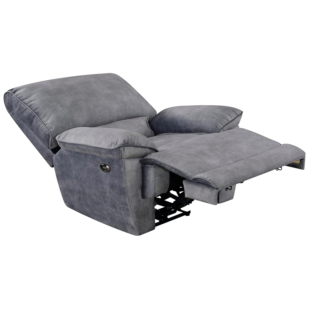 You will find a comfy seat in the Simone Power Recliner, offering extra-wide seating and a plush fabric in a soft-touch grey application. The power control station on the outside arm offers a USB recharging port while the power footrest and pocket coil seating assures your comfort when it is time to kick back and relax!