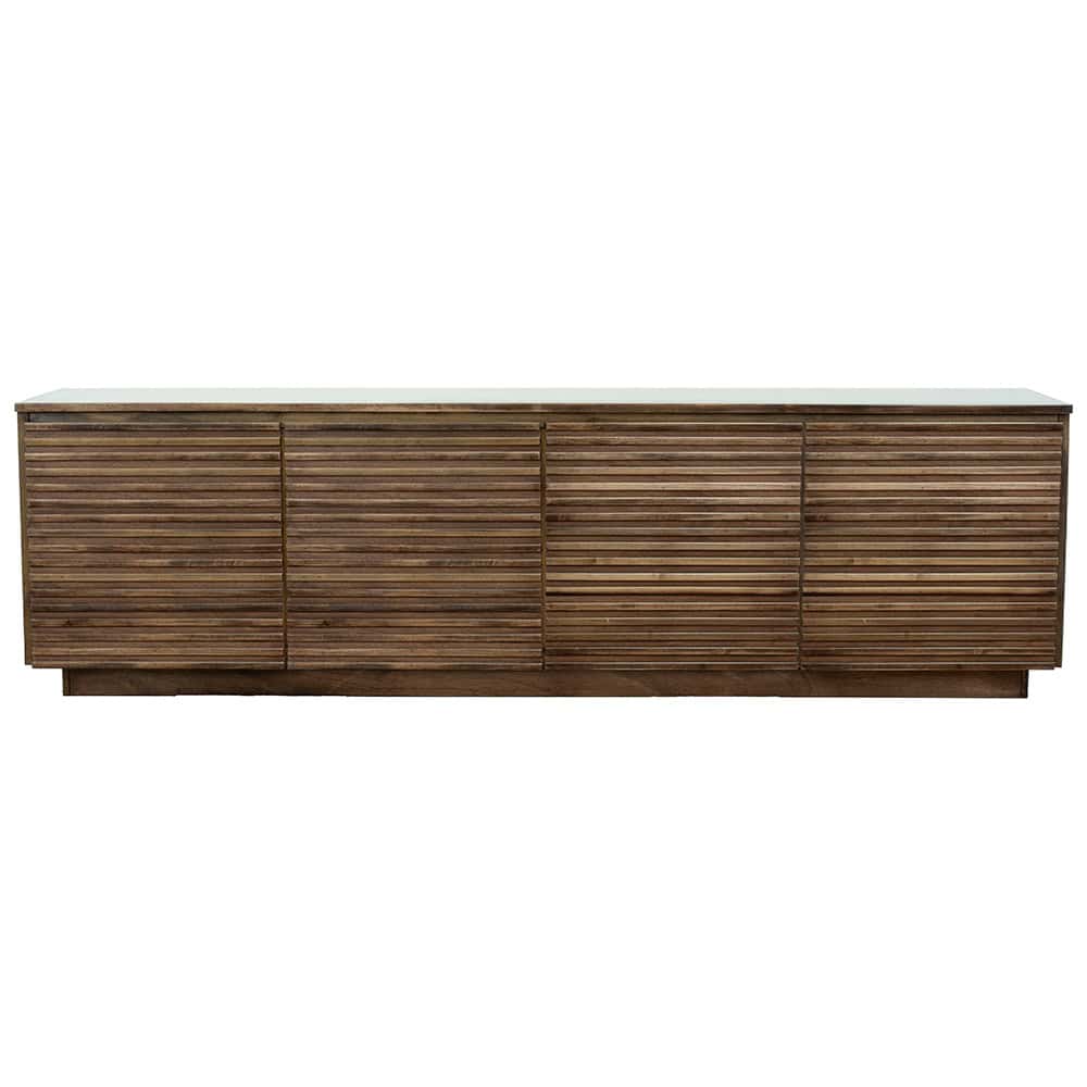The Stardust 86″ 4-Door TV Stand features clean lines and understated design that will transform any room into a modern, sophisticated sanctuary. This unique piece can accommodate TVs up to 95″ in the Living room and can be used as a buffet in the dining room.