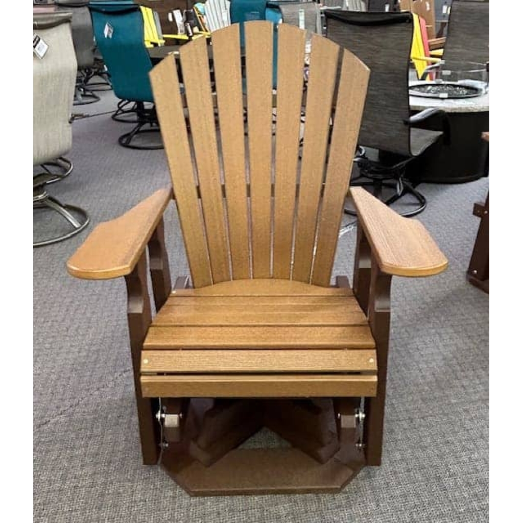 Swivel Glider featured in 2-tone Brown & Woodgrain Mahogany. The Classic line feature a now profiled back and redesigned arm rests. This line continues our tradition of producing high quality poly lawn furniture in unique styles to fit your lawn decorating needs.
