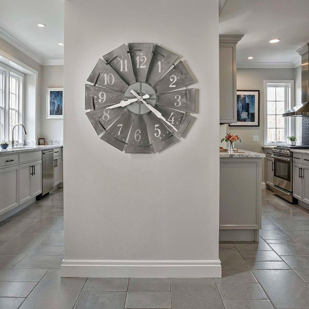 Howard Miller delivers a truly incredible design with this oversized wall clock. Featuring a windmill inspired design, this aged clock will pair perfectly with rustic home designs.