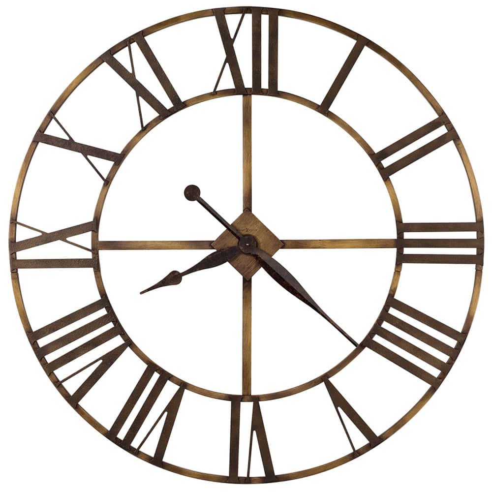 Add rustic style to your living room with the Wingate oversized iron wall clock from Howard Miller. This distinctive timepiece is crafted from durable materials with an antique brass finish for an aged appearance.